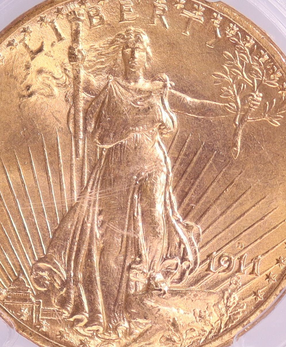1911年-D アメリカ セントゴーデンス ダブルイーグル 20ドル 金貨 ダラス鋳造 【 PCGS MS66 準高鑑定 】