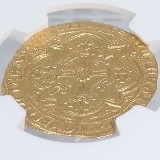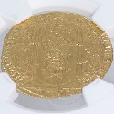 中世ヨーロッパの騎士文化とフランス王権の象徴ともいえる、1364~1380年発行のシャルル5世フランカピエ金貨。